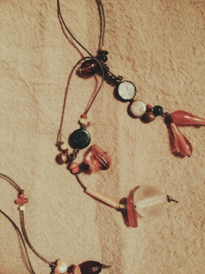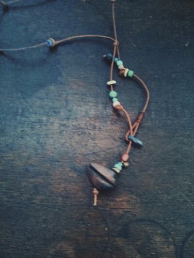 そして、カジュアルなスタイルに合わせやすい、革の創作ネックレスを三種類作りました。