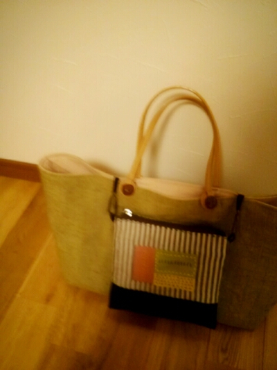 今日は、シンプルなグリーンの麻生地で作ったバッグのご紹介です。
