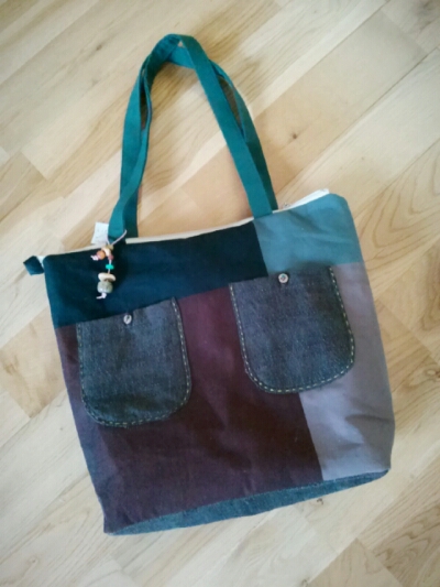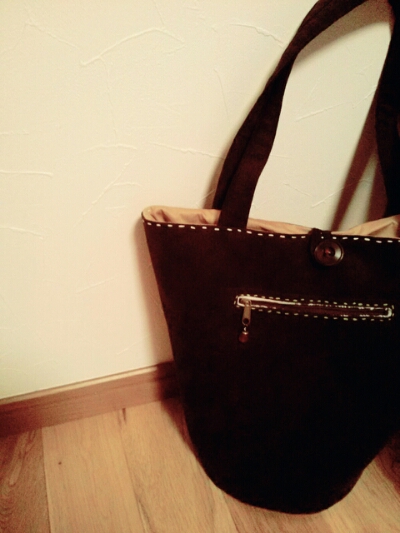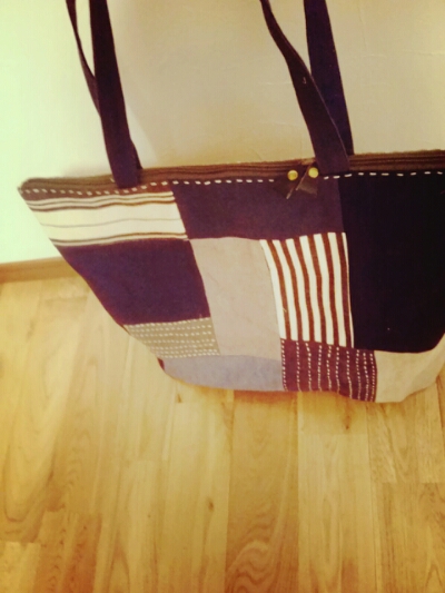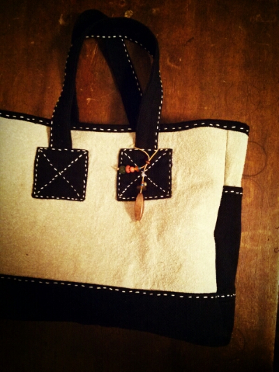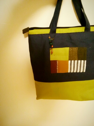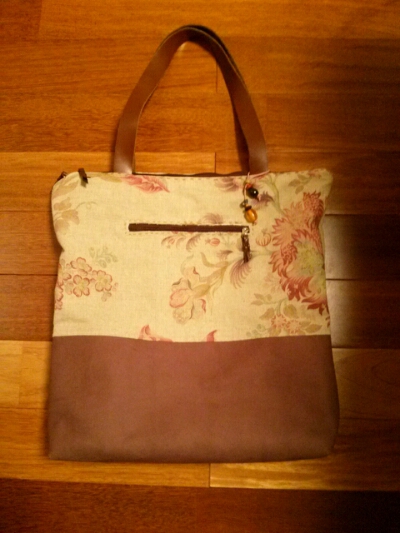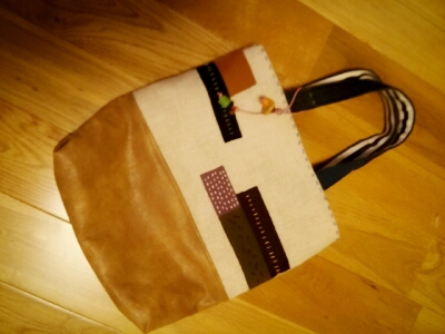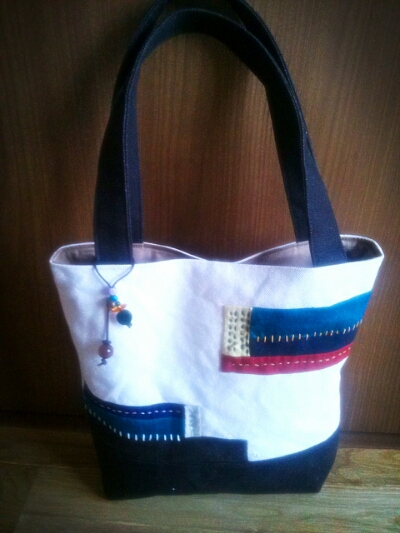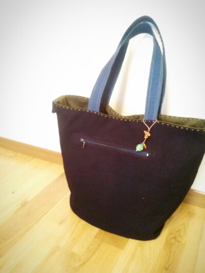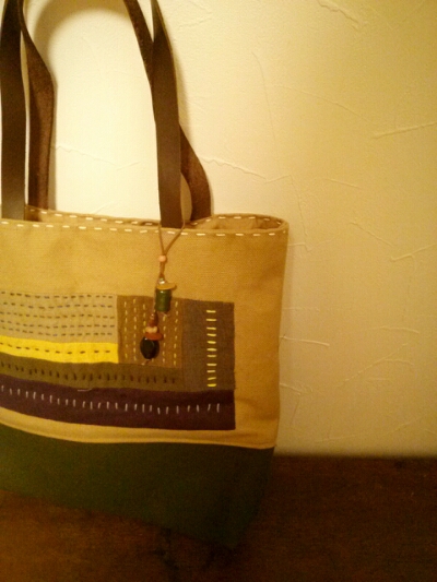 今日の作品は、大きすぎず小さすぎずな、まさに中間ほどの大きさのトートバッグです。