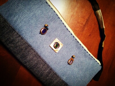 デニム地のシンプルな物にビーズでアクセントを付けてみました。