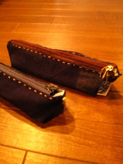 インディゴの生地で制作した筆箱