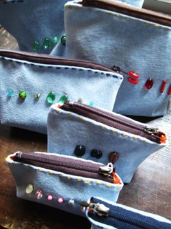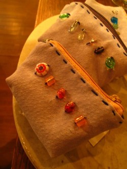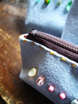 革×ビーズのポーチ