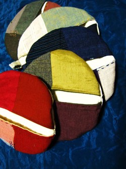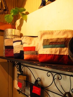 様々なカラーの生地を継ぎ合わせたパッチワークで、全ての小物の雰囲気を変えて、よりオリジナルに見えるようにしてみました。