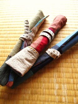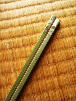本日は、父が今年の竹で作ってくれた竹箸を2つセットにした夫婦箸セットを作ってみました。(持ち運びも出来るよう袋とセットにしてみました。)