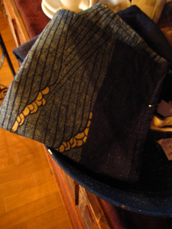 インディゴ染めしてある、柄ありの古布で制作してみました。