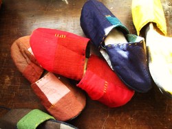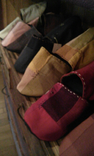 そして、クラフトフェアでほぼ完売してしまっていたスリッパですが、お店に彩りよく飾れる分をせっせこ制作してみました。